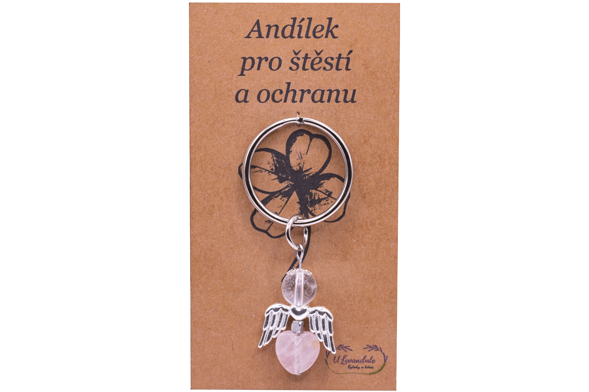 Přívěsek ve tvaru andílka, který je vyroben z přírodních minerálů - Růženín, Křišťál