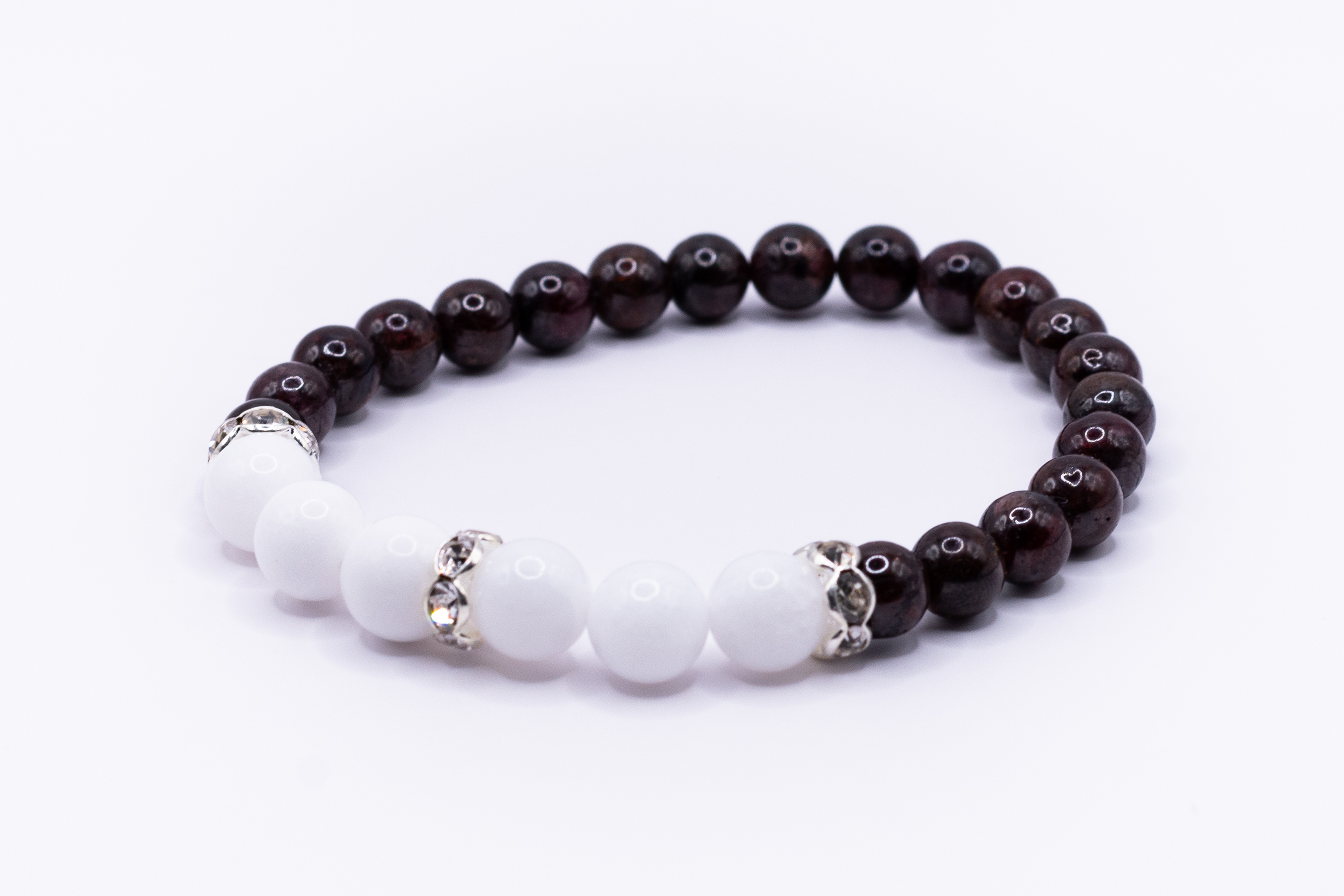 Náramek z přírodních minerálů, který je vyroben z korálků o průměru 6 a 8 mm.