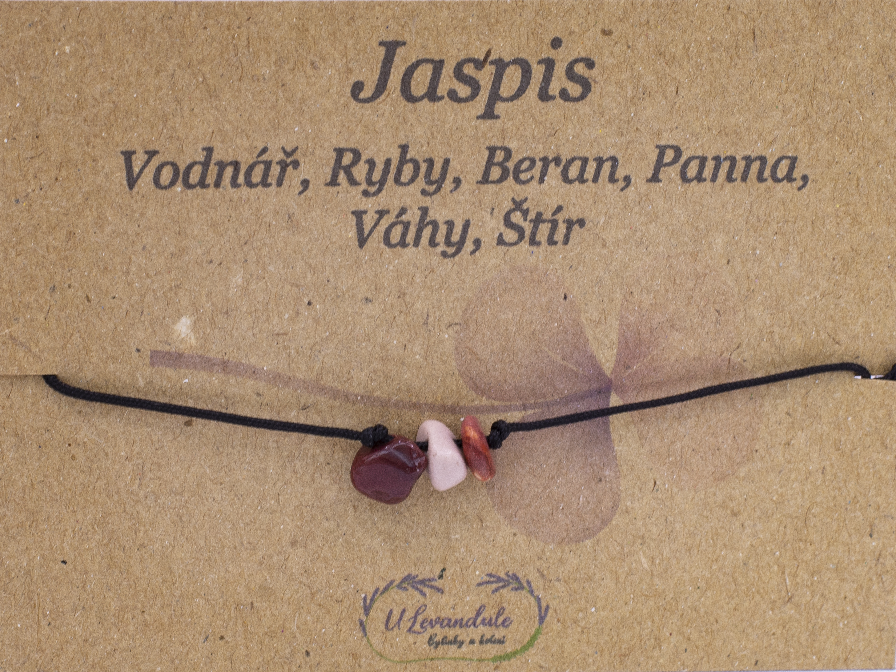 Náramek je dárkově zabalen na papírové kartičce v celofánovém sáčku.