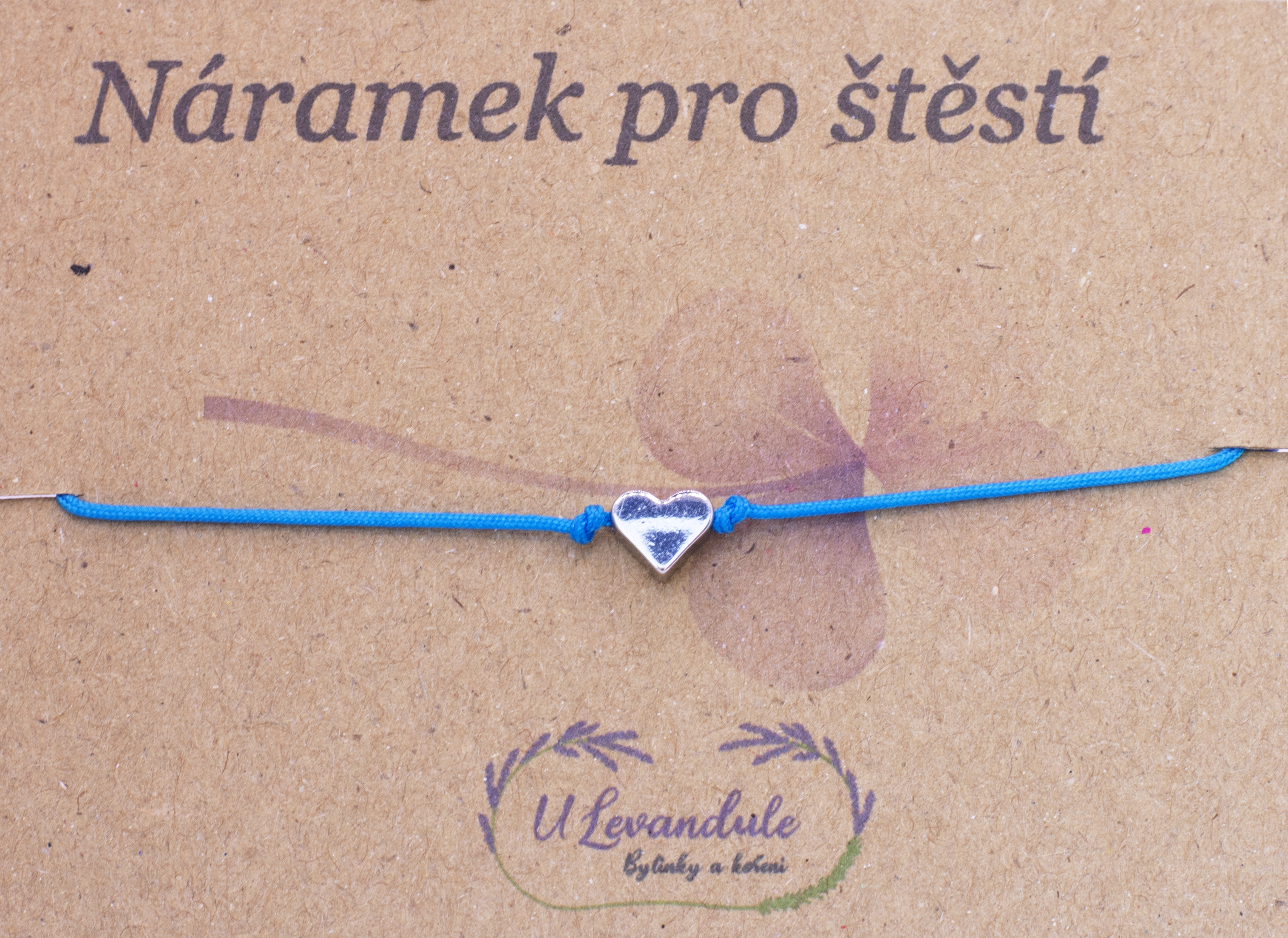 Náramek je dárkově zabalen na papírové kartičce v celofánovém sáčku.