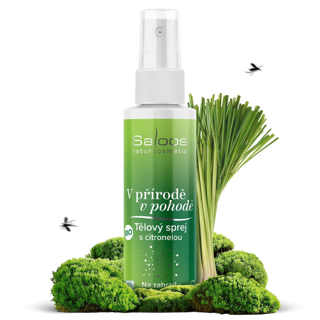 Přibalte s sebou na výlety do přírody, lesa a nebo i na zahradní party přírodní tělový sprej od značky Saloos s citronelou a buďte tak díky němu V přírodě v pohodě. Obsahuje 100% přírodní esenciální oleje známé pro své repelentní účinky díky nimž nevoní obtěžujícímu hmyzu jako jsou klíšťata či komáři.