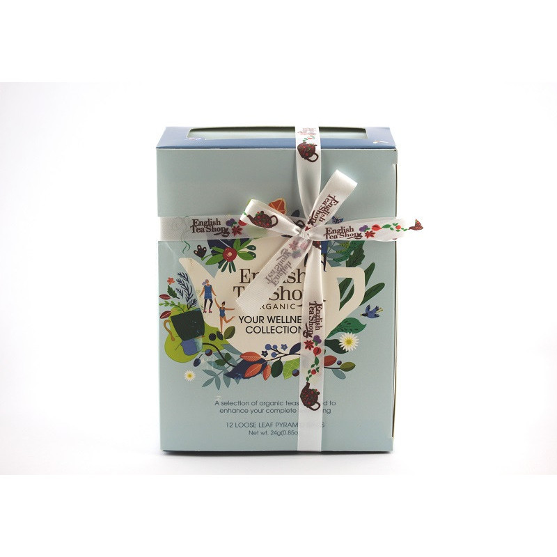Dárková sada čajů Wellness od značky English Tea Shop obsahuje kvalitní zelené a bylinné čaje v bio kvalitě. Vychutnejte si čajovou směs Tvaruj mě, Pro spánek, Zklidňující čaj, Očisti mě a čaj Pocit štěstí.